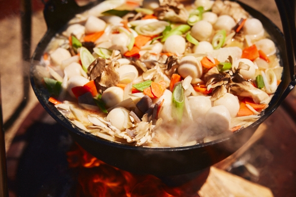 会津の郷土料理である「芋煮」。秋が旬の里芋やきのこをふんだんに使った会津の芋煮は、秋の味覚として地元の人々に親しまれています。会津地方では約300年以上の歴史がある「会津味噌」をはじめ、醤油や酒、麹や甘酒などさまざまな発酵食品が作られ、それらは発酵文化として地域に根付いています。そのため、芋煮を作るときも、味噌と醤油を組み合わせることが特徴の一つです(*2)。本イベントでは、味噌と醤油をベースに、酒粕をブレンドした芋煮を提供します。