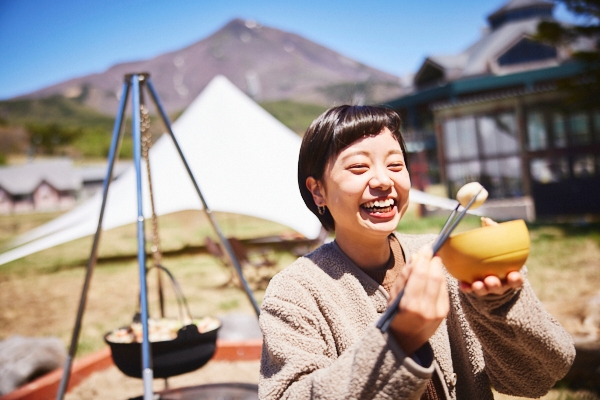 日本百名山の一つである磐梯山が眼前にそびえ立ち、雄大な自然に囲まれた磐梯山温泉ホテル。「発酵いも煮会」では紅葉に染まる磐梯山を眺めながら、自然を感じられる屋外の会場で芋煮を提供します。発酵食品や季節の野菜をふんだんに使用した芋煮を自然の中で食べることで、ゲストのパワーチャージを目指します。