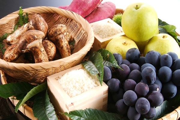 地魚・牛肉・豚肉のしゃぶしゃぶ、松茸の天ぷら、秋のフルーツ(梨・ぶどう)、紅ガニ、新鮮な魚介のお寿司、ローストビーフ、お造りやサザエの壺焼きなど