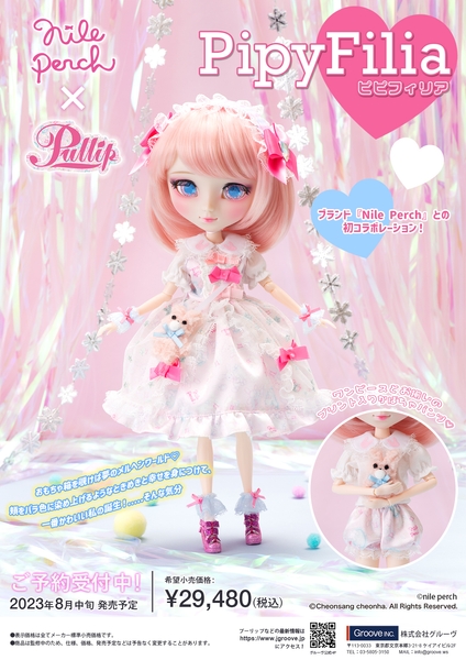 株式会社グルーヴは、ファッションドール「Pullip(プーリップ)」と、パステルカラーを基調にファンシーでドリーミーなお洋服を展開するブランド『NILE PERCH』とのコラボレーションドールを販売いたします。