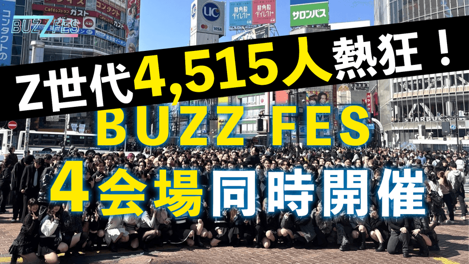 「Z世代の可能性を信じ、引き出し、拡張する」といったビジョンのもと、エンターテインメントを軸に、Z世代の早期人材育成事業を展開する株式会社LIFEEntertainment (本社:東京都渋谷区、代表取締役社長:大越春輝) は、2025年3月1日(土)にて都市型フェス『BUZZ FES~SHIBUYA FES~』を東京都 渋谷区の4つの大規模会場にて同時開催いたしました。1日の開催にも関わらず4,515名にご来場いただき、大盛況のうちに幕を閉じました。
