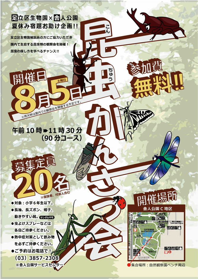 【定員に達したため受付終了いたしました】【舎人公園】夏休み宿題お助け企画!昆虫かんさつ会