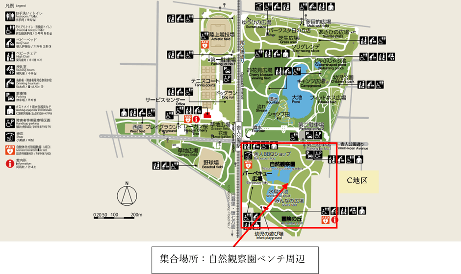 東武スカイツリーライン西新井駅西口から足立区コミュニティバスはるかぜ3号「舎人団地行」で「舎人公園東」または「舎人公園」下車