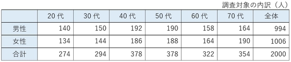 調査対象:全国20代~70代の男女2,000名