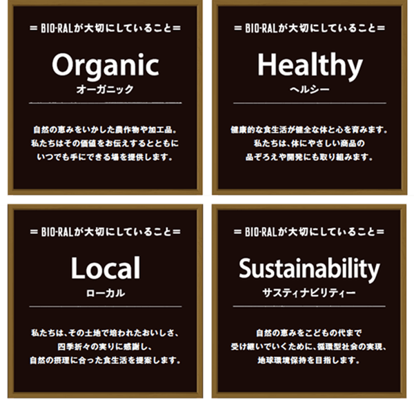 ドイツ語「BIOLOGISCH(有機の)」と英語「NATURAL(自然)」からなる造語。“素敵なナチュラルライフスタイルを通じて、心も身体も健康で美しく豊かな毎日を過ごしてもらいたい”と願うスーパーマーケット。