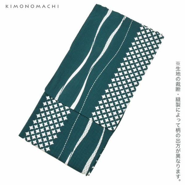 ポリエステル 浴衣単品「市松よろけ縞 緑」