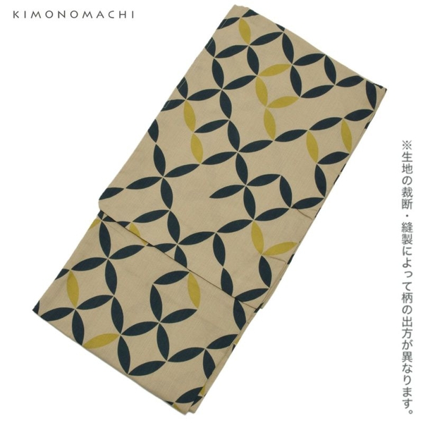 ポリエステル 浴衣単品「破れ七宝 ベージュ」