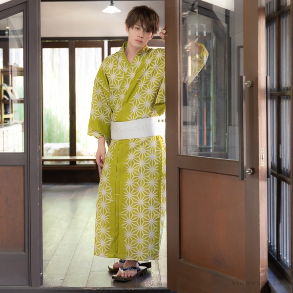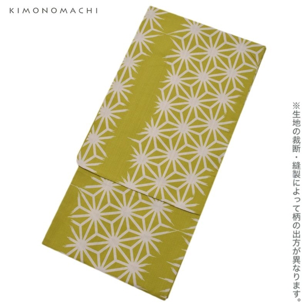 ポリエステル 浴衣単品「破れ麻の葉 抹茶色」