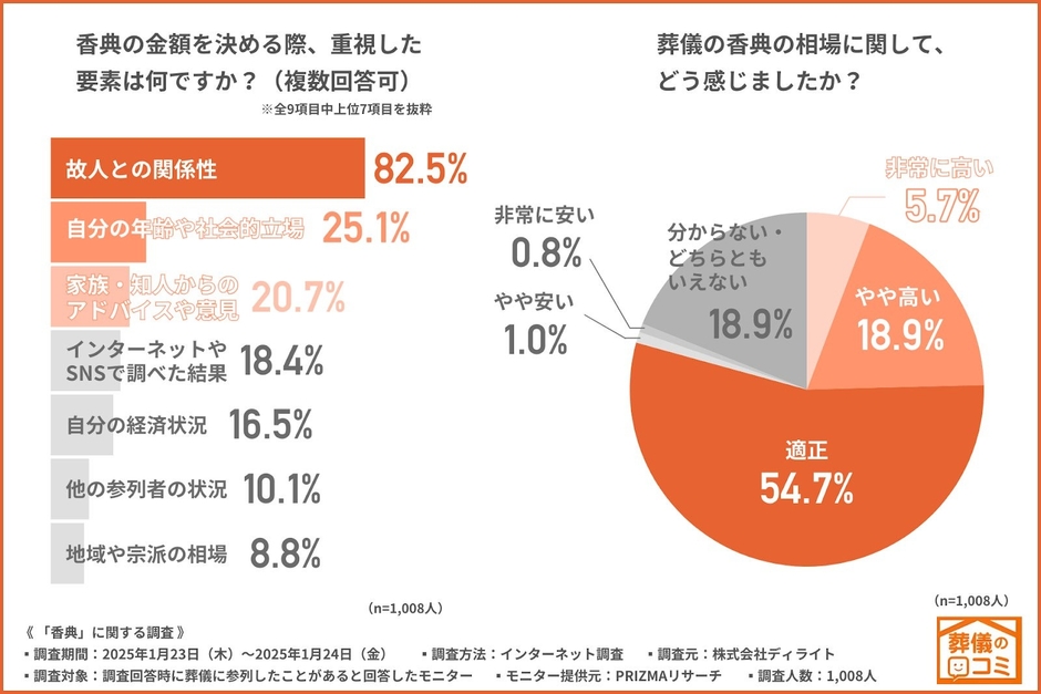 【香典に関する調査】事前の情報収集は「金額相場」を重視、8割以上が「故人との関係性」により決定