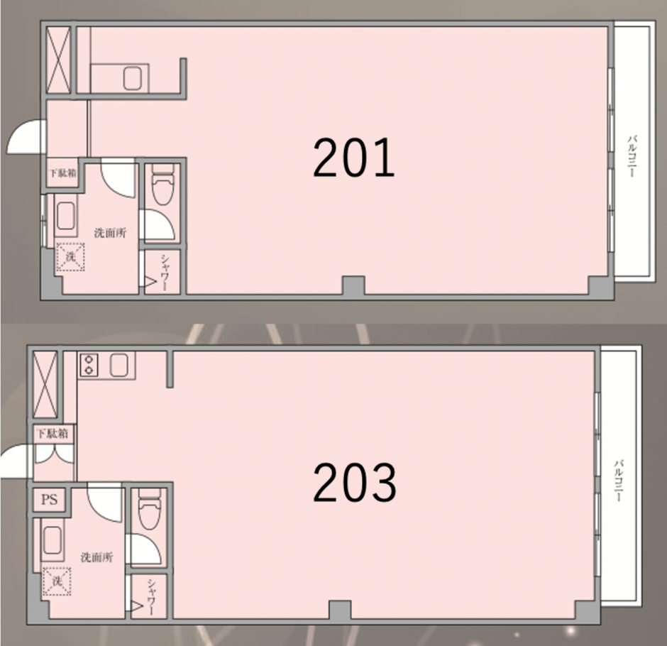 住居をスケルトンにしてフルリノベーションしたこちらの物件。床は無垢材が使用されておりチープな印象を与えません。203は白壁に明るめの床材のためシンプルで洗練された空間に仕上がっている一方、201はダークトーンで重みのある空間です。モルタル壁と白壁があるため同じ部屋の中でも違った雰囲気の空間作りができ、一つの部屋の中でいろんなパターンの写真撮影もできそうです。隣にあるA棟も改装予定です。