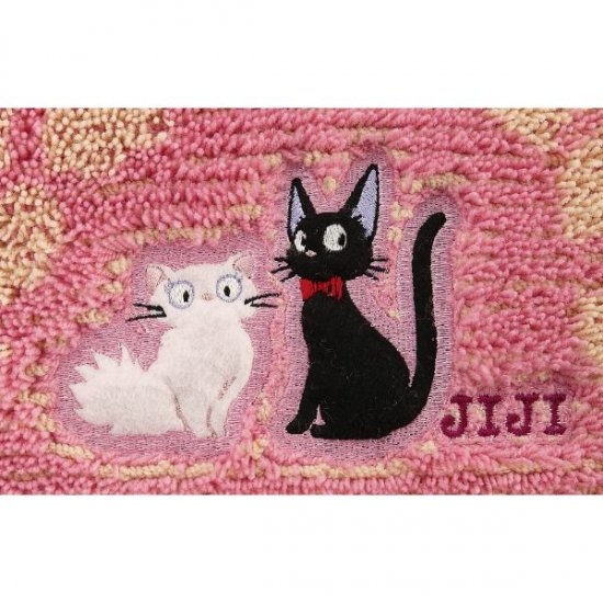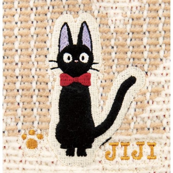 右下には、「魔女の宅急便」の象徴的なキャラクターである黒猫のジジと、ガールフレンドのリリーのかわいい刺繍入り。