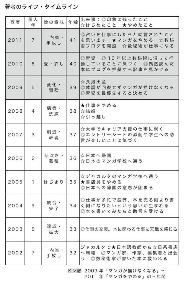 私が数秘術を仕事にするまでのライフ・タイムラインを掲載しますので、参考にしながら書いてみましょう。