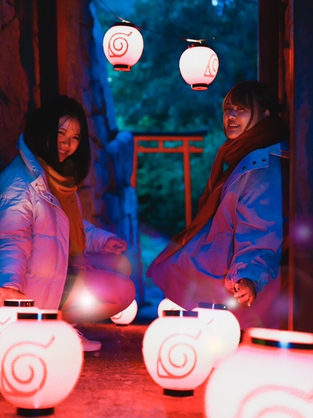 「NARUTO&BORUTO 忍里」初となる、オリジナル“和風イルミネーション”を開催。「地の巻」エリア~ラーメン「一楽」までの道に提灯を照らし、夜の忍里を今までにないライトアップでお楽しみ頂けます。合わせて、イルミネーションやプロジェクションマッピング等の夜のコンテンツに特化した「ナイトチケット」を同期間限定で販売いたします