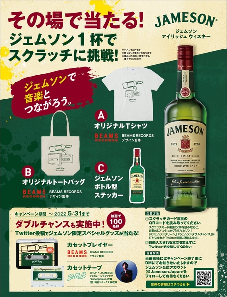 JAMESONと、2021年のフジロックで初出演ながらグリーンステージを沸かせた話題のアーティスト“SIRUP(シラップ)”とのコラボレーションを記念して行われている、JAMESON限定スペシャルグッズが当たるキャンペーンにハブも参画。