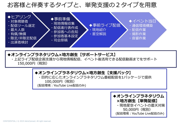 株式会社アストロコネクト(本社:神奈川県川崎市多摩区 代表取締役:荒井大作、以下、アストロコネクト)は、アフターコロナを見据えて地方創生におけるオンライン活用をご検討されている地方自治体様・観光企業様向けに、「オンラインプラネタリウム地方創生支援サービス」を提供いたします。星空・映像技術・オンライン配信の専門家が現地イベント企画からオンラインイベント提案、配信までをワンパッケージでサポートいたします。