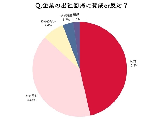 外資系企業や大手・IT企業等を中心にリモートワークを廃止・縮小し、出社回帰を宣言する企業の動きについて尋ねたところ、約9割の女性が「反対」と回答しました。