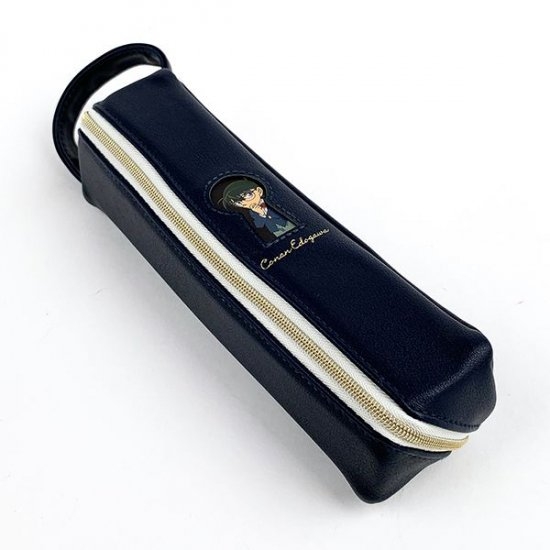ネイビーのシックな雰囲気に、鍵穴から覗くコナンのデザインの、ポーチです。使いやすいラウンド型で、程よいマチもあります。