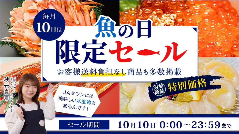 JA全農が運営する産地直送通販サイト「JAタウン」は、10月10日(木)に「魚の日限定セール」を開催します。