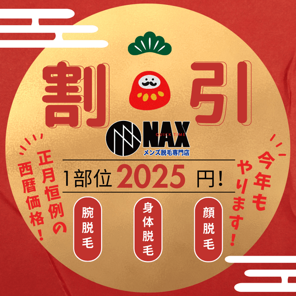 【2025キャンペーン】メンズ脱毛NAXが1月のキャンペーン始動!対象部位がなんと2025円!