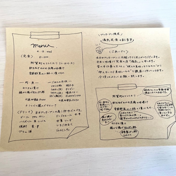 人気の定食メニューやテイクアウトのおにぎりを是非お楽しみください。