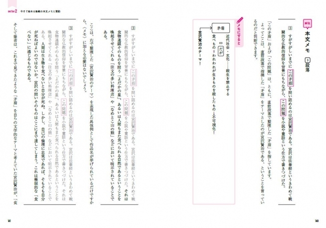 そこで本書では、まず良質の課題文を一文一文丁寧に読み解き、段落ごとに要点を整理し、メモに書き出していくことを行います。その一連の工程をじっくりとお伝えします。