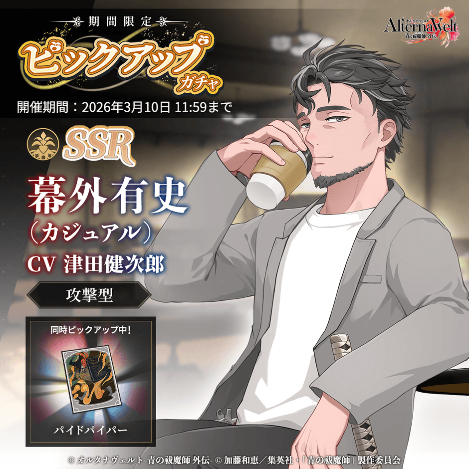 ゲーム『オルタナヴェルト -青の祓魔師 外伝-』2月17日(火)より「SSR 幕外有史(カジュアル)」が期間限定ピックアップガチャに登場!