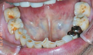 さらに高齢者では、永久歯に生え変わってから70年前後、同じ歯を使い続けているので、歯がもろくなり、歯と歯がこすれあって、歯の咬み合わせがすり減る咬耗(こうもう)やハブラシや歯間ブラシ等で歯がすり減る磨耗(まもう)等の歯の損傷が発生しやすくなります。
