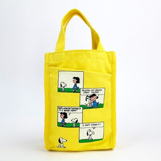 カラーバリエーションはイエロー・オレンジ・ブルー・レッドの4色♪それぞれレトロスヌーピーのデザインが違って、選ぶのも楽しめるラインナップです。反対面のポケット部分のイラストも違うので、悩んでしまうかもしれません。
