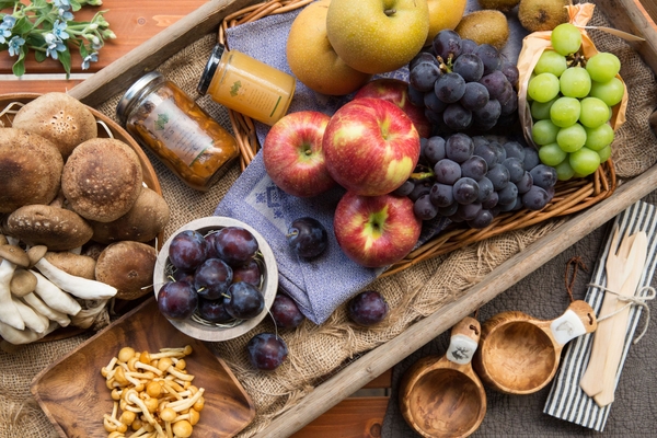 本イベントで購入できる商品は、りんごやぶどうの果物、野菜の他、ジャムやハチミツ、漬物、味噌などの加工品、ワインやジュースなど、商品ラインナップが豊富です。その場で食べられるテイクアウト商品もあります。