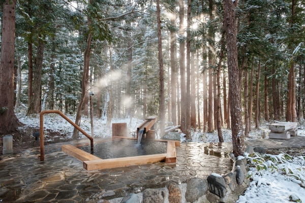 土地の地形や木々を活かした大風呂、4つの貸切露天風呂は、季節・時間によってその表情を変えます。露天風呂の湯巡りで、自然のなかに溶け込むようなひとときをお楽しみください。