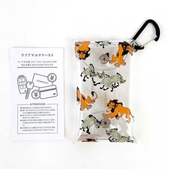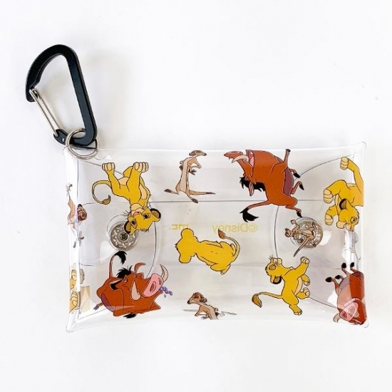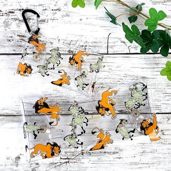 ディズニーの人気キャラクターのライオンキングのチラシ柄のクリアマルチケースです。文房具や小さい小物を入れたり、とても使い勝手の良いケースです◎カラビナが付いているので引っかけて使うこともできますし、透明なので中の物も見やすくて取りやすいのでとてもおすすめです♪