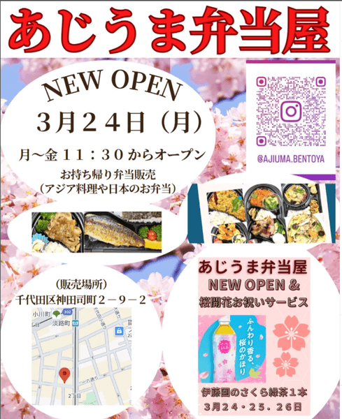 神田に、新たなお弁当屋さん「あじうま弁当」がオープンしました!東南アジア出身の店主が手がける本格的なアジアン弁当から、親しみやすい和食弁当まで、多彩なメニューを取り揃えています。