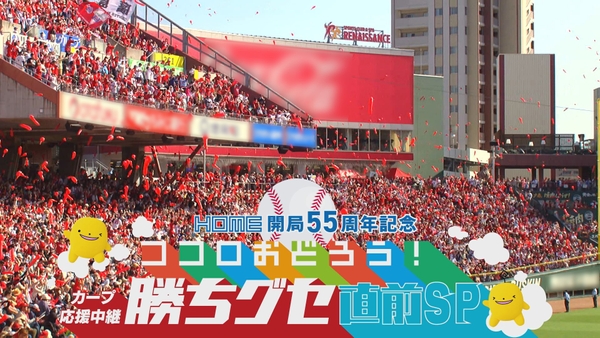 広島ホームテレビ(広島市中区)は、開局55周年記念としてHOMEスポンサードゲーム「ココロおどろう!勝ちグセDAY」を5月25日に実施します。勝ちグセ中継はもちろん見どころ満載の事前特番を放送、マツダスタジアムではスペシャルな企画を準備して「勝ちグセ DAY」を盛り上げます。
