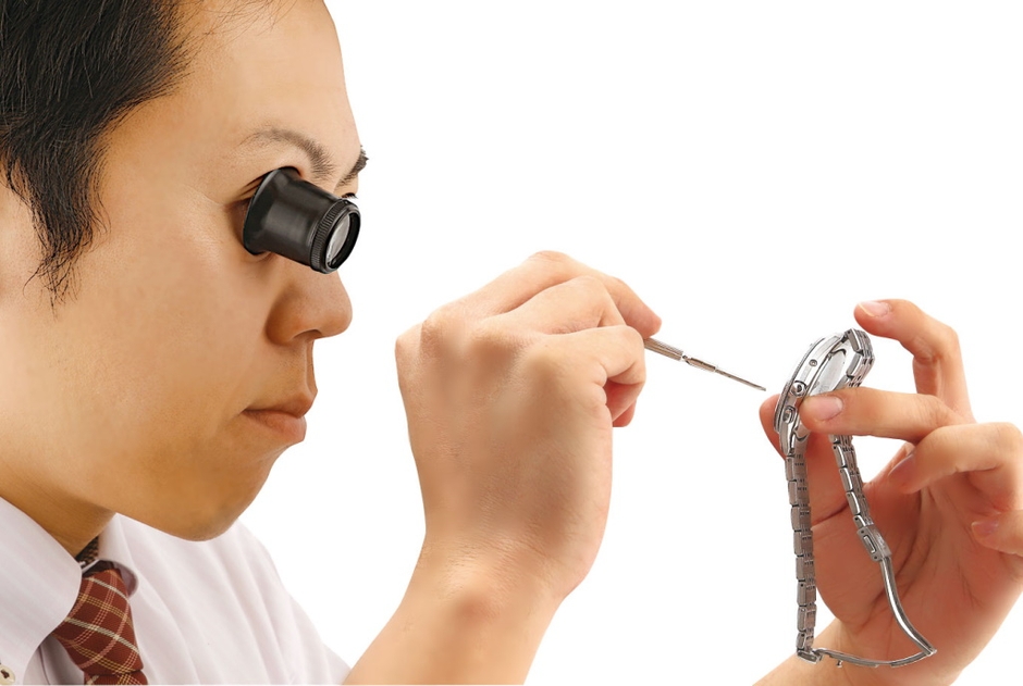 ルーペの位置や角度を調整する必要がなく、両手を使った作業がはかどります。倍率は5倍と高倍率のため、時計修理などの精密作業に適しています。