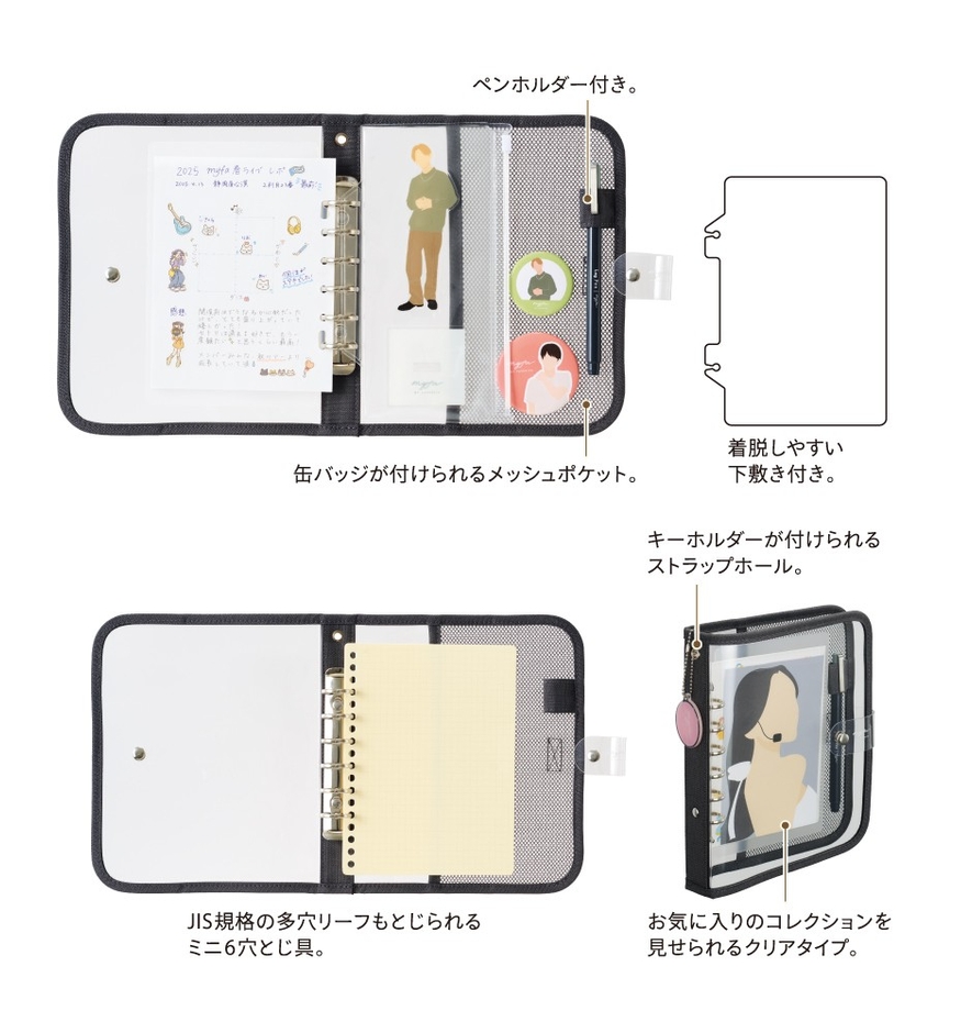 材質:表紙/PVC・ポリエステル、とじ具/スチール、下敷き/ポリプロピレン ミニ6穴