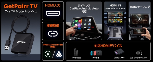 クルマでも、家のようにテレビが観られる!YouTubeもNetflixも楽しめる、Fire TV Stick対応HDMI搭載×ワイヤレスCarPlay/Android Auto対応「GetPairr TV(Car TV Mate Pro Max)」 新年限定セール|今なら約1万円で購入可能