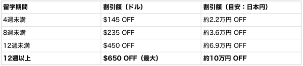 留学期間と割引額