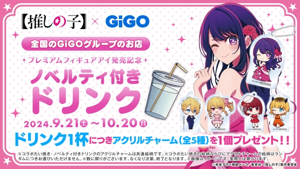 株式会社GENDA GiGO Entertainment(本社:東京都港区 代表取締役社長:二宮 一浩 以下当社)は GiGOグループのお店におきまして、プレミアムフィギュア アイ発売記念としてTVアニメ『【推しの子】』とのコラボキャンペーンを2024年9月21日(土)より開催いたします。