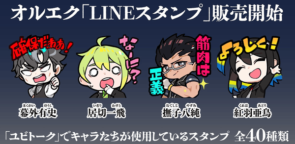 ぜひお手元の端末でオルエクのキャラクターたちと同じスタンプをお使いください。