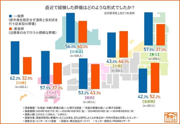 沖縄では「一般葬」が一般的。首都圏では「家族葬」の割合が最多に