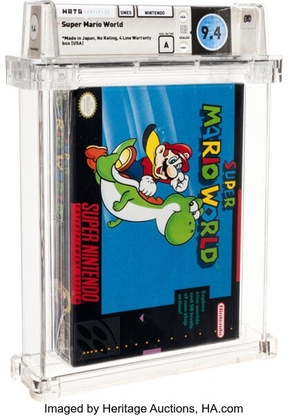 スーパーファミコン版『スーパーマリオワールド』 Wata 9.4 A 未開封、初版(任天堂、1991年) 落札価格:125,000ドル(約1,870万円)