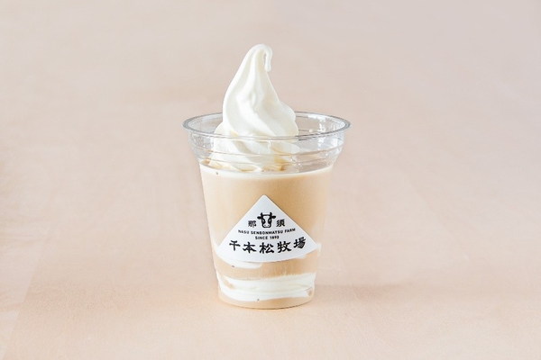 自慢のソフトクリームにカフェインフリー、砂糖不使用のミルクコーヒーを注いだ、やさしい甘さのシェイク。