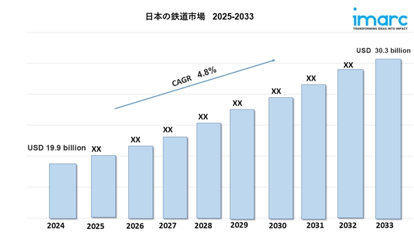 IMARCグループの最新レポートによると、日本の鉄道市場規模は2024年に199億米ドルに達しました。今後、IMARCグループは、2025年から2033年の間に4.8%の成長率(CAGR)を示し、2033年までに市場が303億米ドルに達すると予想しています。市場は、高度な技術、高速鉄道のイノベーション、都市接続性、持続可能性によって繁栄し、全国的に効率的な輸送ソリューションを推進しています。