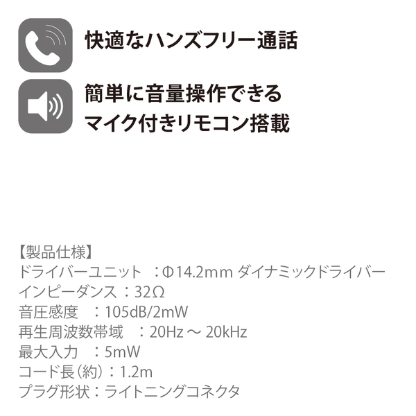 ライトニングコネクタ搭載ステレオイヤホン