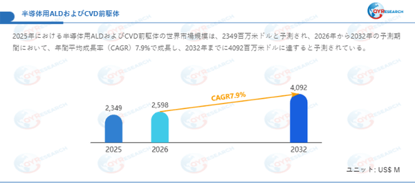 本記事は、QY Research発行のレポート「半導体用ALDおよびCVD前駆体―グローバル市場シェアとランキング、全体の売上と需要予測、2026~2032」に基づき、市場動向および競合分析の概要を解説します。