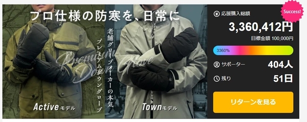 老舗グローブメーカーが挑む革新的防寒手袋、自分の体温で発熱する新技術を搭載 8月30日よりクラウドファンディングで販売開始