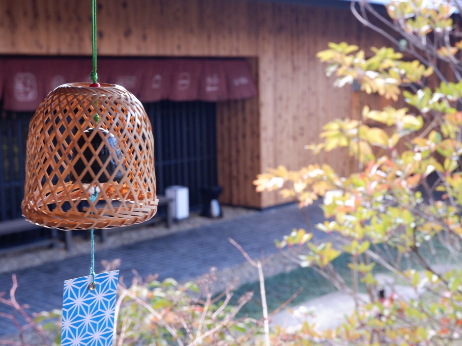 客室にも使われている長野県大町市の伝統工芸「松崎和紙」の風鈴。天然の葉や花を漉き込んだ、温かみのある風合いが特徴です。