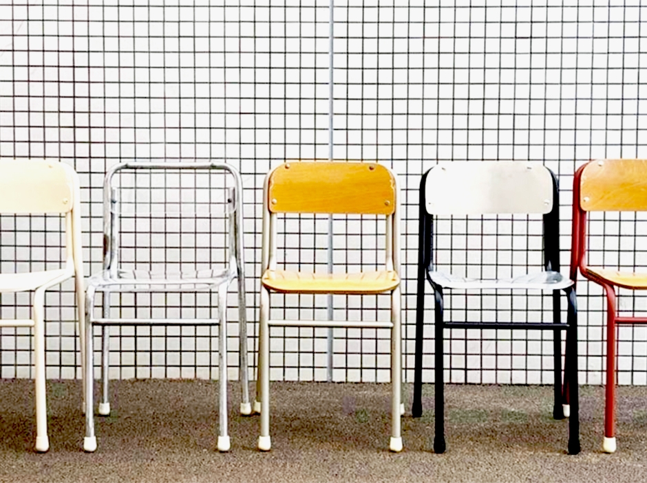 橘研究室では「地域資産とデザイン」をテーマに、地元世田谷の町工場がもつ技術の発展や保存について研究しています。本展では、学生が町工場の技術を理解する第一歩として、廃棄された学校椅子を分解し、各パーツの素材やデザインの意図や工法について理解を深め、再加工をほどこした椅子を展示発表します。