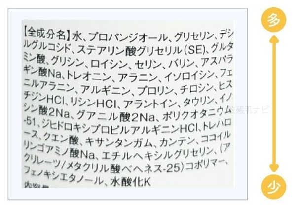 ・成分表示は配合量が多い順。ただし1%以下は順不同に注意。