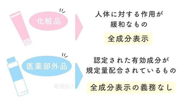 医薬部外品と化粧品は表示ルールが異なりますので、比較する際は注意が必要です。